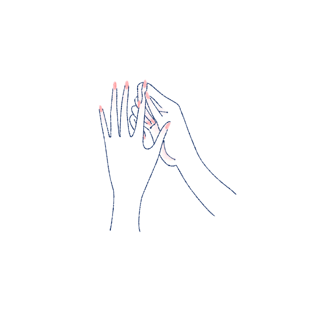 やさしく、両手の甲から全体に馴染ませるように伸ばし、指の付け根や爪の周りにも馴染ませます。